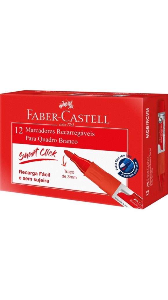 MARCADOR QUADRO BRANCO RECARR.SMART CLICK FABER-CASTELL CAIXA C/12 UNID.